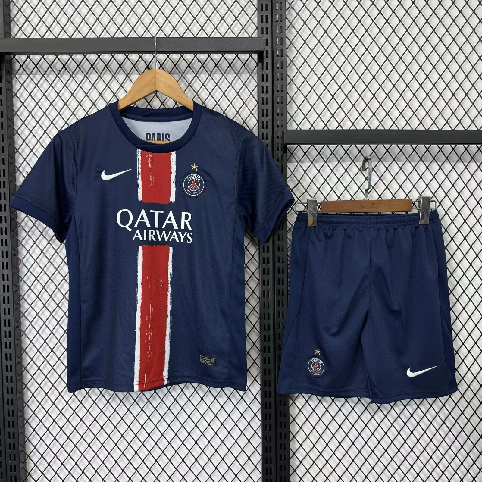 חליפת ילדים פריז סן ז’רמן בית 25/26 – חולצה ומכנס בעיצוב יוקרתי בצבעי כחול־אדום